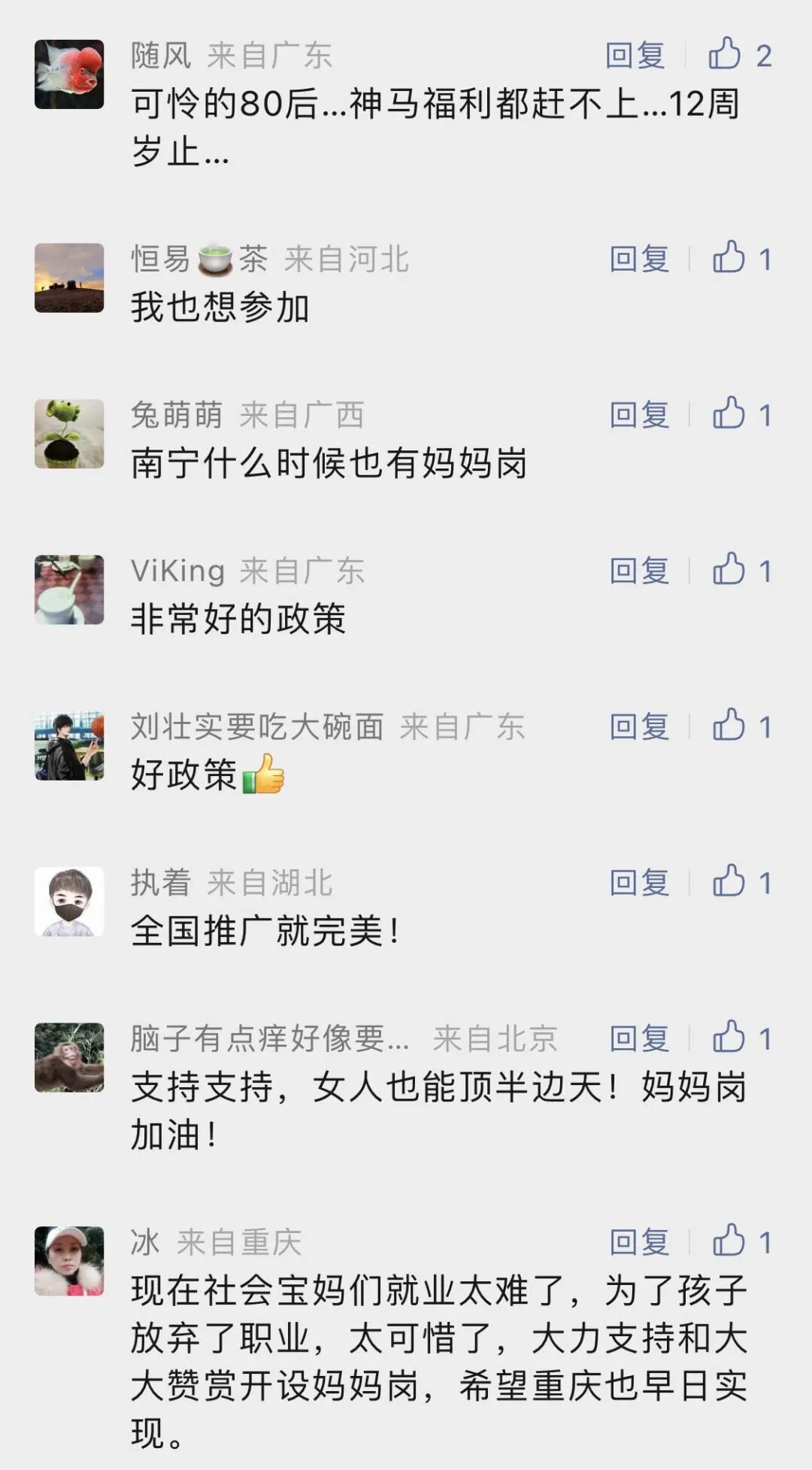 据悉,不只广东,在江西、四川等地也都有“妈妈岗”出现。工作时间自由、灵活的“妈妈岗”一经推出,受到妈妈们的热烈响应。