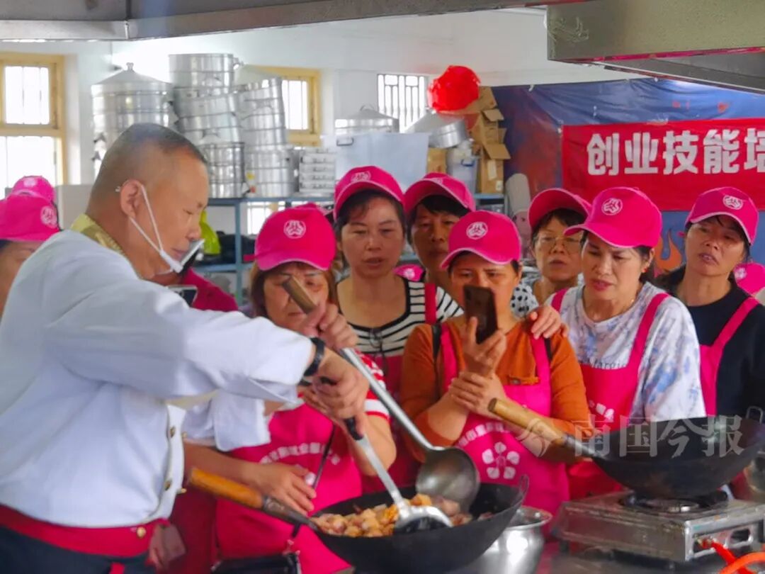 培训的三天中,老师除了教大家做红烧肉,还教做扣肉和菊花鱼,从选材、调料,调糖色到烹调,每个步骤详细讲解。大家都睁大眼睛,一个比一个认真。“学这个很有用,不仅家里用得上,以后还能去干个厨嫂,很不错呀!” 廖启琼说。