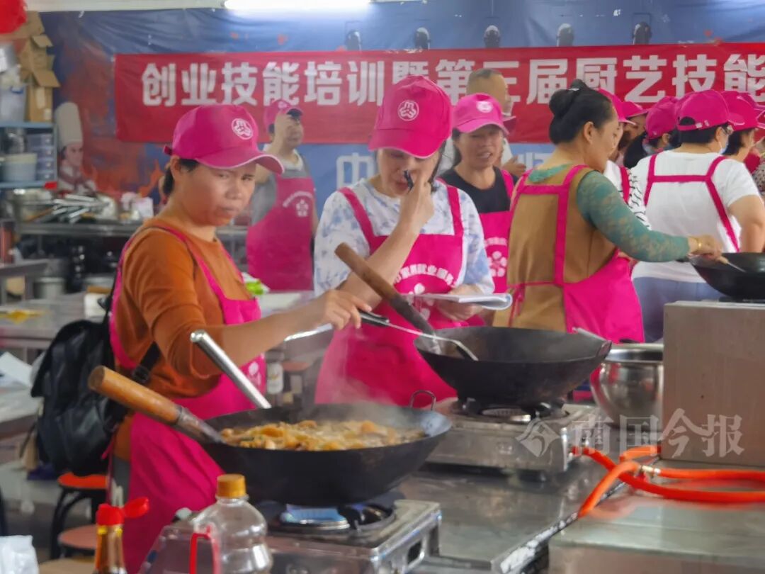 这是由柳州市妇女儿童发展中心主办的妇女创业技能培训暨第三届厨艺技能竞赛,廖启琼和其他参加者将接受三天的赛前培训,然后进行比赛。