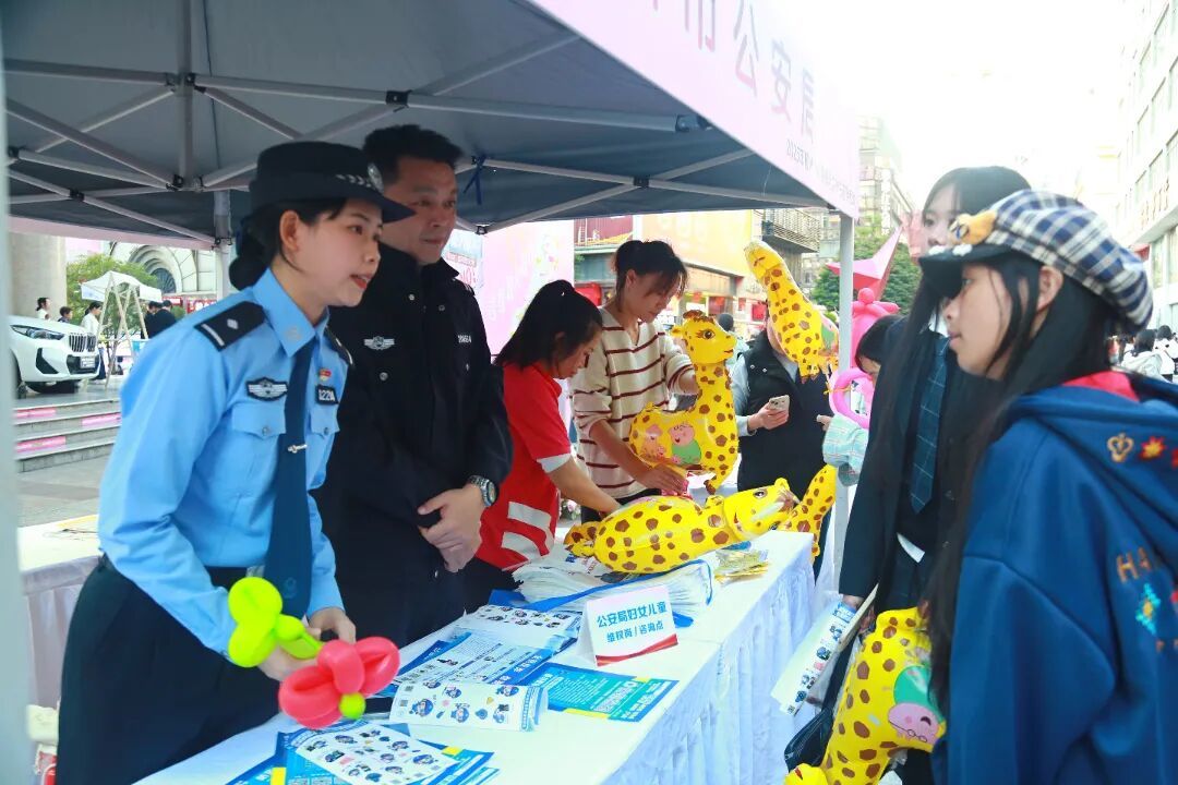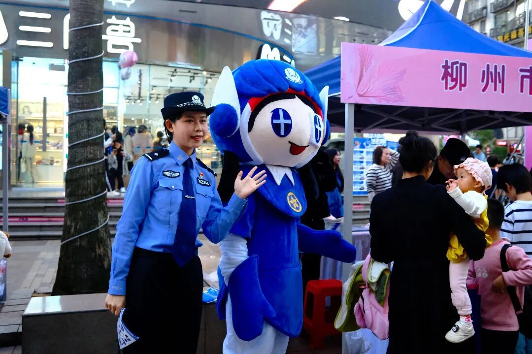 活动现场,市公安局与民政局组织的“柳小明+螺sir爱的抱抱温暖行动”成为焦点。憨态可掬的卡通人偶动与过往市民拥抱互动,用温暖的肢体语言传递“拒绝暴力、拥抱关爱”的理念。