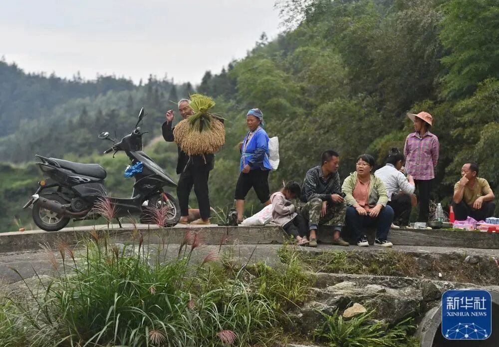 ▲杨宁和邻村(吉曼村)村民们在田边协商山泉水引水工程相关事宜(10月8日摄)。广西柳州市融水苗族自治县安陲乡江门村地处大苗山深处,是一个少数民族群众聚居的村寨,曾因山多地少、资源匮乏、交通闭塞而深陷贫困之中。2010年,25岁的杨宁大学毕业后,选择回到生养自己的江门村,成为一名村干部。十多年来,在各级党委政府的支持下,杨宁和驻村工作队带领群众修路、盖楼、架桥、引水,群众生产生活和人居环境发生很大变化。杨宁组织成立了种养专业合作社,带领村民们开发高山泉水西瓜、高山生态水稻、特色玉米、百香果等特色农产品。2013年,杨宁和6名大学生村干部建立起了农产品电商服务中心,通过运营电商平台、直播带货等方式,将村里的竹荪、香菇、腊肉等特色农产品销往全国各地。江门村2020年实现整村脱贫。近年来,带领全村致富奔小康的杨宁荣获全国脱贫攻坚先进个人、中国青年五四奖章、全国优秀党务工作者、全国三八红旗手等荣誉。