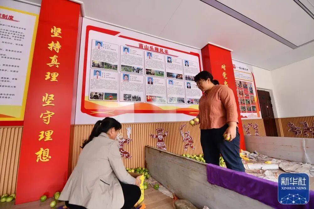 ▲杨宁(左〉和同事在乡村振兴直播间准备直播工作(10月8日摄)。