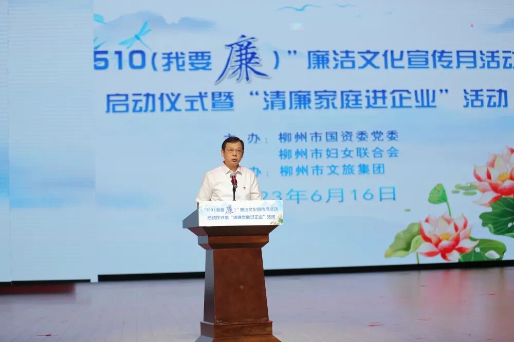 近日,由市国资委党委、市妇联主办,市文旅集团承办的“510(我要廉)”廉洁文化宣传月活动启动仪式暨“清廉家庭进企业”活动在柳空文创园举行。自治区国资委党建处一级调研员肖加洲,市国资委党委副书记、副主任曾惠新,市妇联二级调研员胡君兰,清廉国企建设工作小组责任单位相关人员,市直属国有企业党委副书记、纪委书记,党务部门、纪检部门负责人以及基层党员代表、职工代表近400人参加活动。