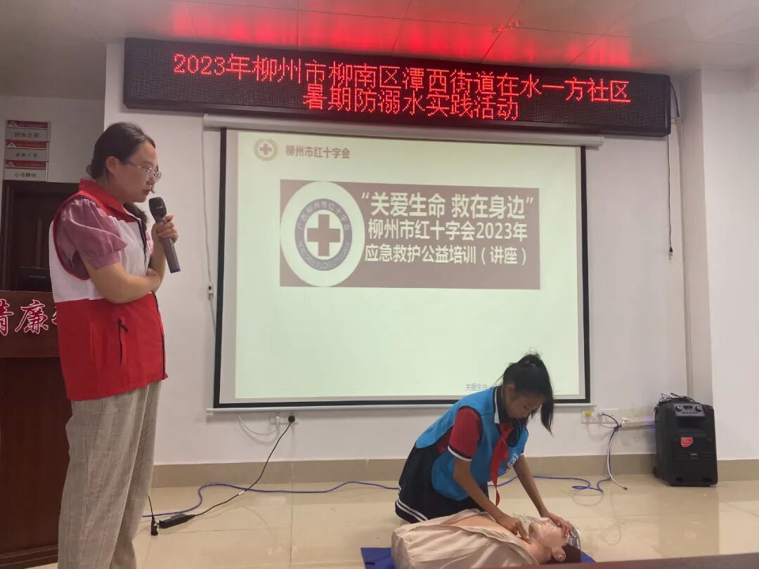 在水一方社区联合西堤路小学、潭西社区卫生服务中心开展暑期儿童防溺水实践活动,通过知识讲解和实操演练,进一步增强孩子们的安全意识和防范能力。