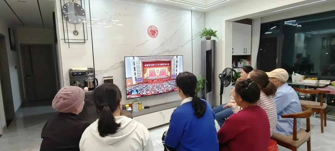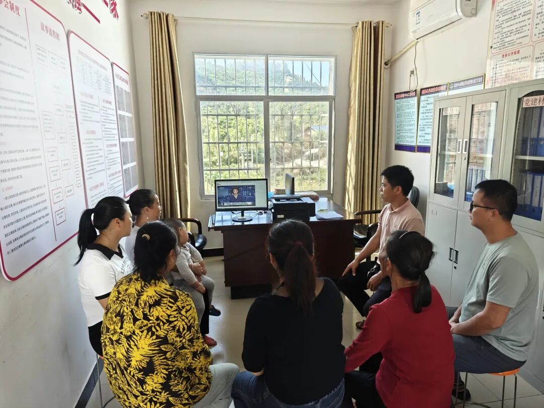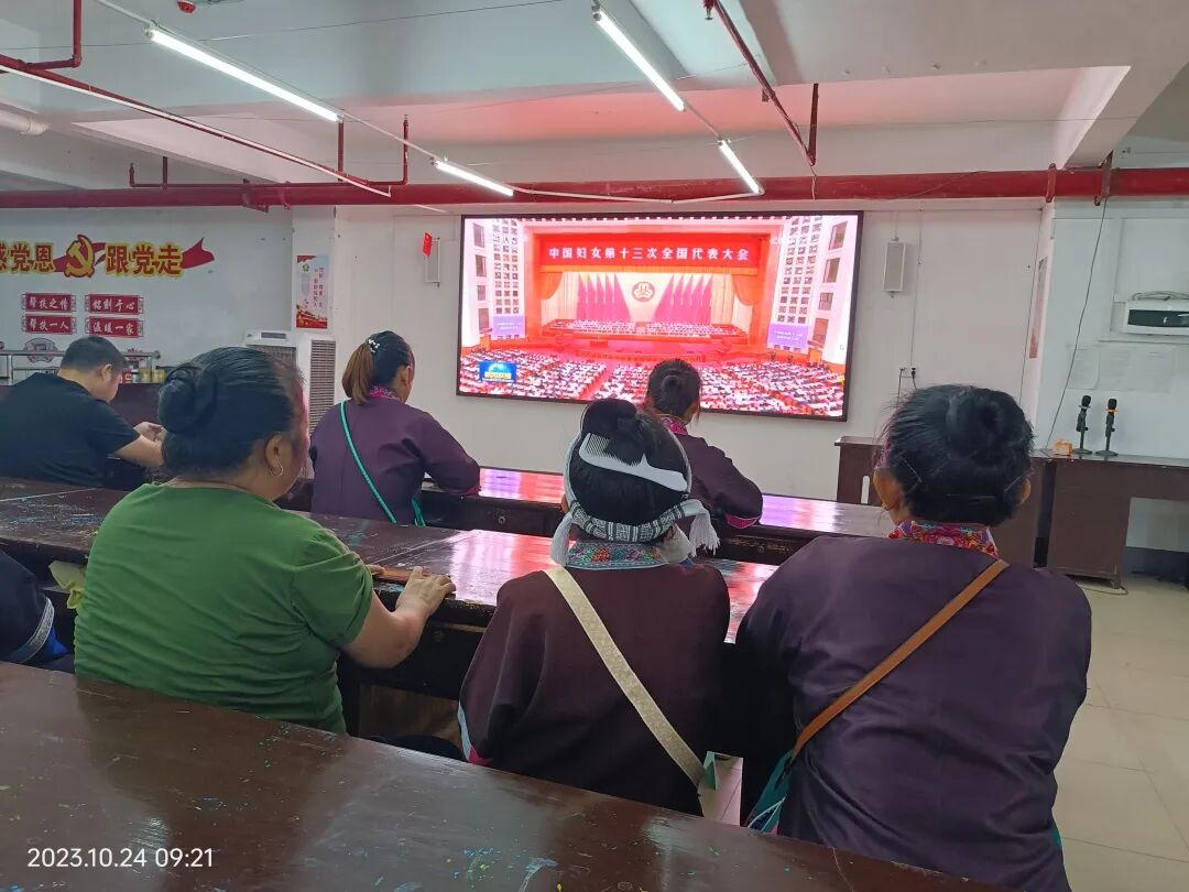 三江县古宜镇南站社区易安点妇联执委和妇女代表集中收看中国妇女十三大新闻