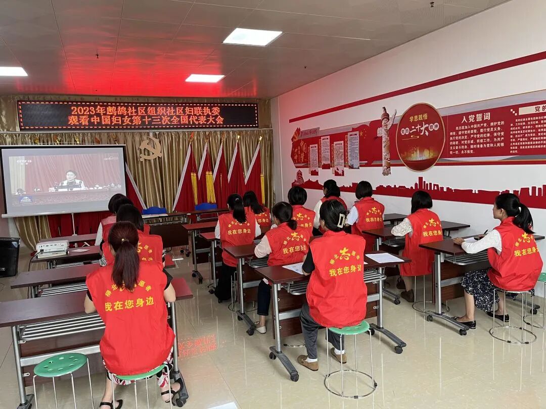 柳南区妇联与金绿洲社区妇联干部共同收看中国妇女十三大新闻