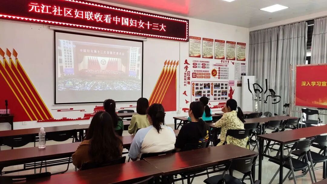 鱼峰区麒麟街道元江社区组织妇女干部职工收看中国妇女十三大新闻