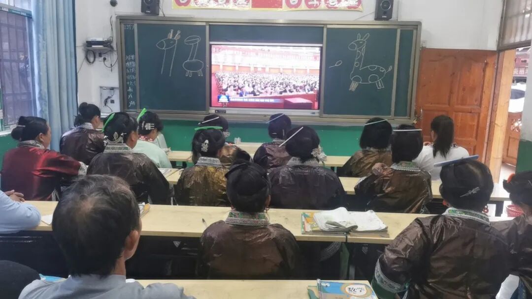 融水县苗家小镇社区组织收看中国妇女十三大新闻