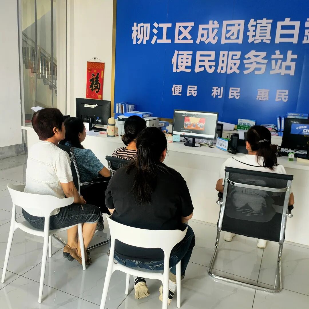 柳江区成团镇白露村组织妇女代表收看中国妇女十三大新闻