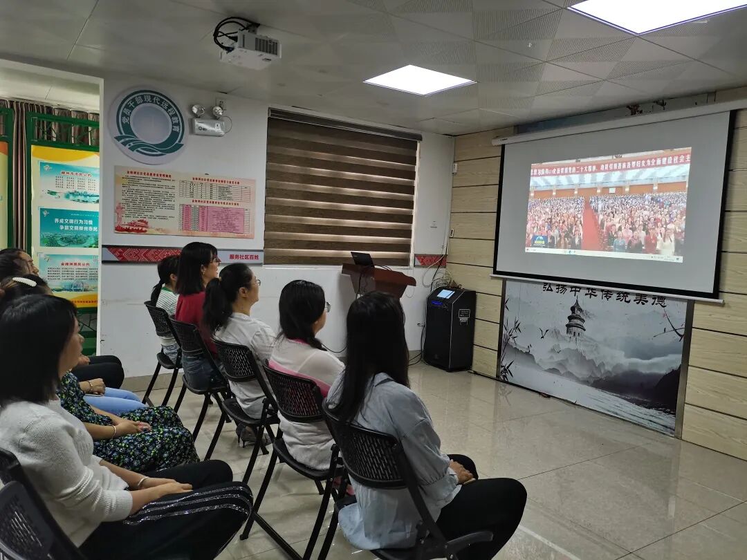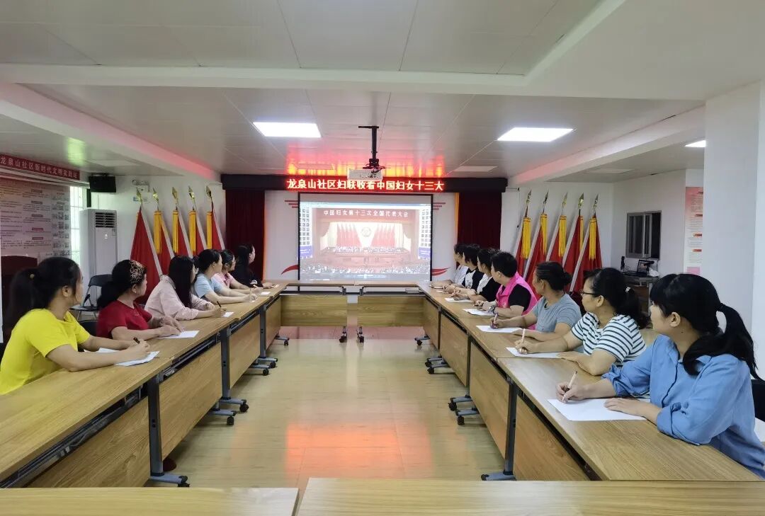 鱼峰区五里亭街道龙泉山社区组织妇女干部职工、“桂姐姐”宣讲员等收看中国妇女十三大新闻