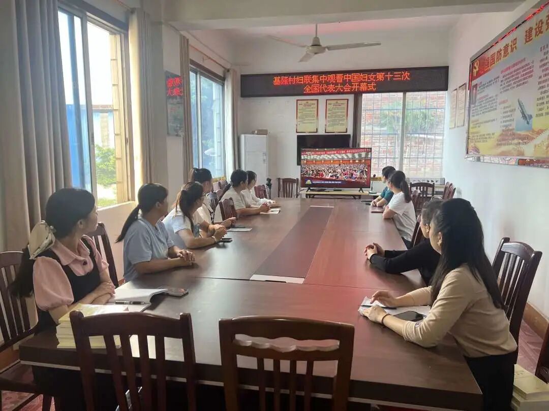 柳南区潭西街道基隆村妇联组织村干及妇女代表收看中国妇女十三大新闻