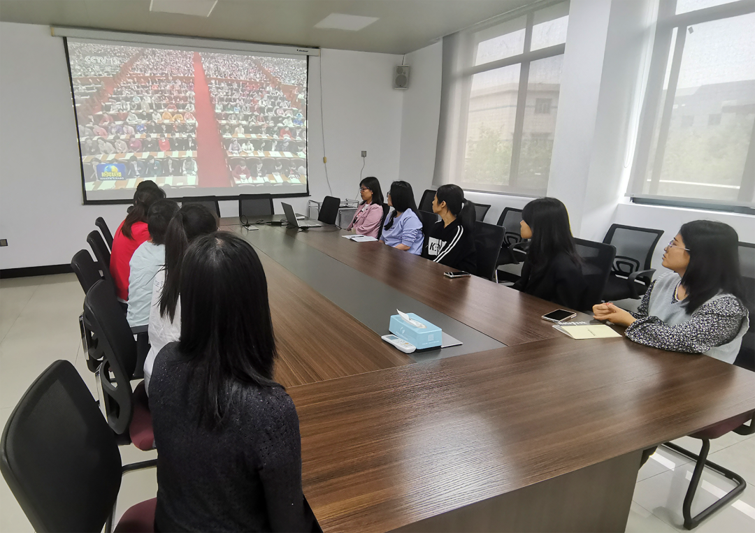 柳城县圣特药业妇联组织收看中国妇女十三大新闻