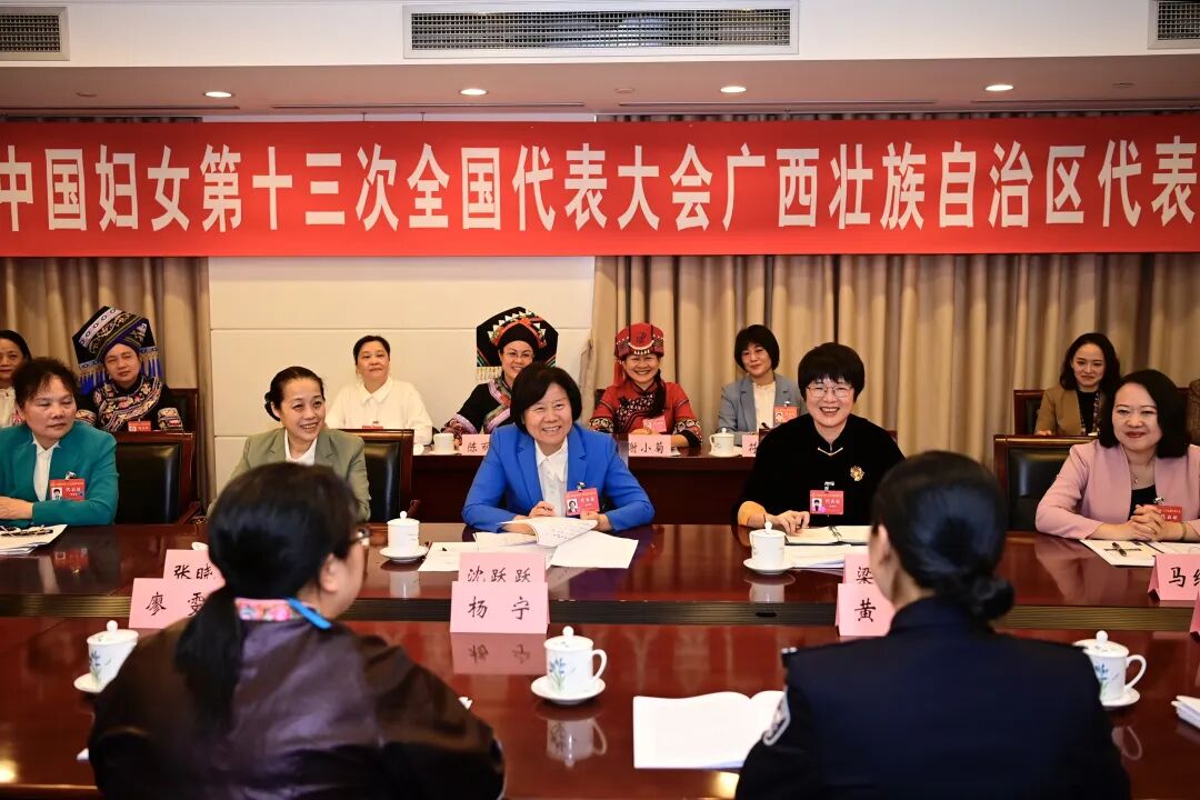 10月23日下午,中国妇女第十三次全国代表大会主席团常务主席沈跃跃来到她所在的广西代表团,一起认真学习习近平总书记关于妇女儿童和妇联工作的重要论述,学习丁薛祥同志代表党中央所做的致词,审议大会报告。她指出,习近平总书记亲自出席大会开幕会,充分体现了以习近平同志为核心的党中央对妇女事业发展和妇女作用发挥的高度重视,对亿万妇女和全体代表的亲切关怀,我们备受激励、倍增动力。党中央致词对广大妇女和妇联组织充分肯定、寄予厚望,对谱写新时代“半边天”的绚丽华章提出明确要求,要认真学习领会、坚决贯彻落实。大会报告主题鲜明、务实奋进,完全赞成。