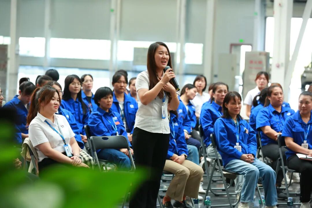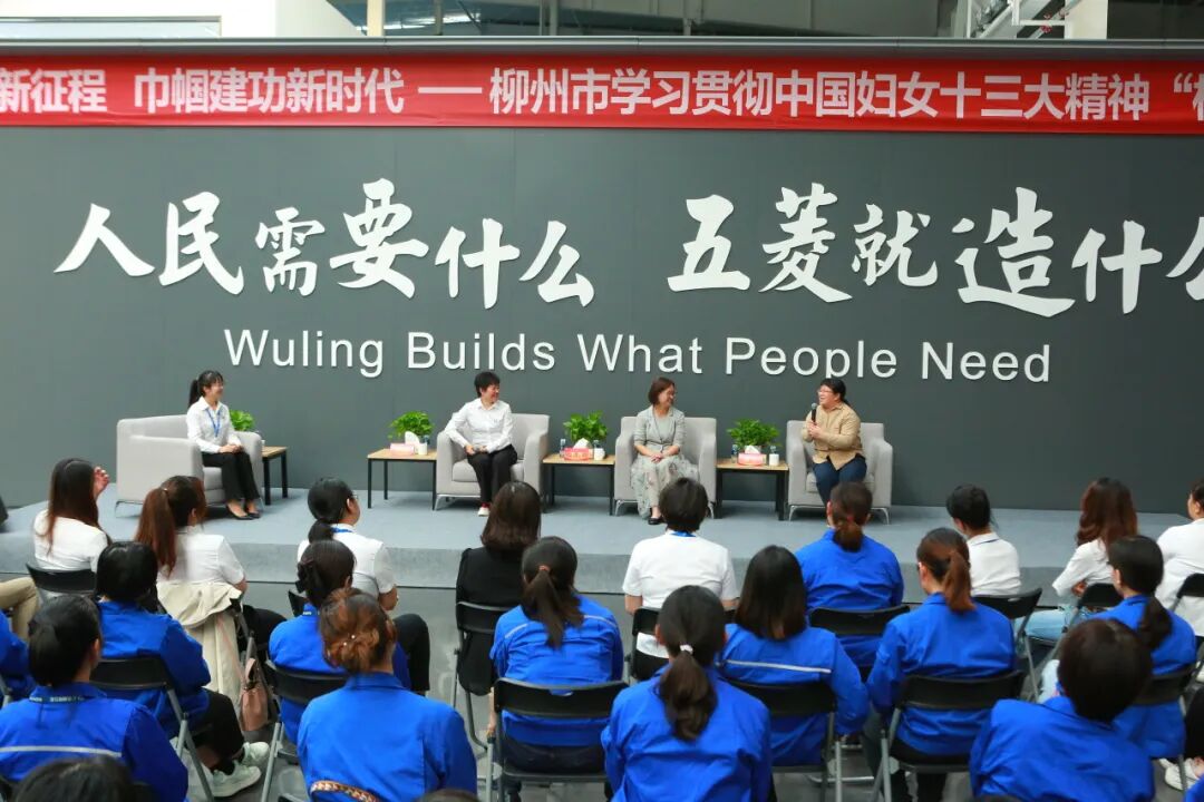 现场,市妇联主席韦玮、上汽通用五菱股份有限公司女职委主任李丽明、融水县安陲乡江门村党总支部书记杨宁与来自各个车间的女职工们分享了大会盛况、传达了大会精神,以及参会时的所想、所思、所感。