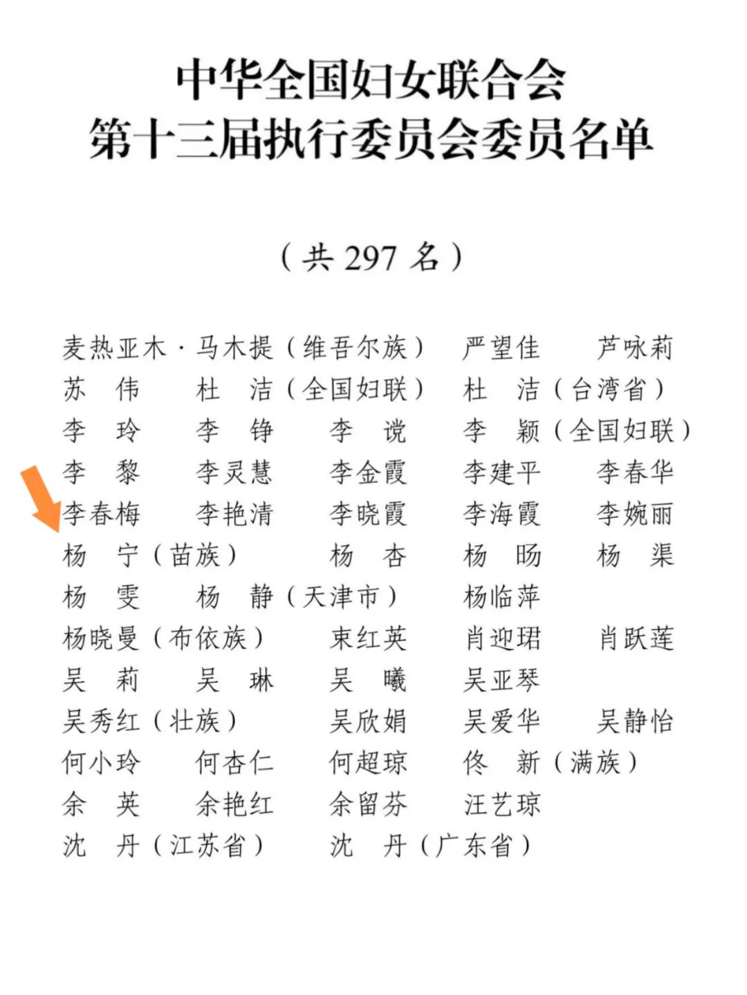 大会上,杨宁当选中华全国妇女联合会第十三届执行委员会委员。