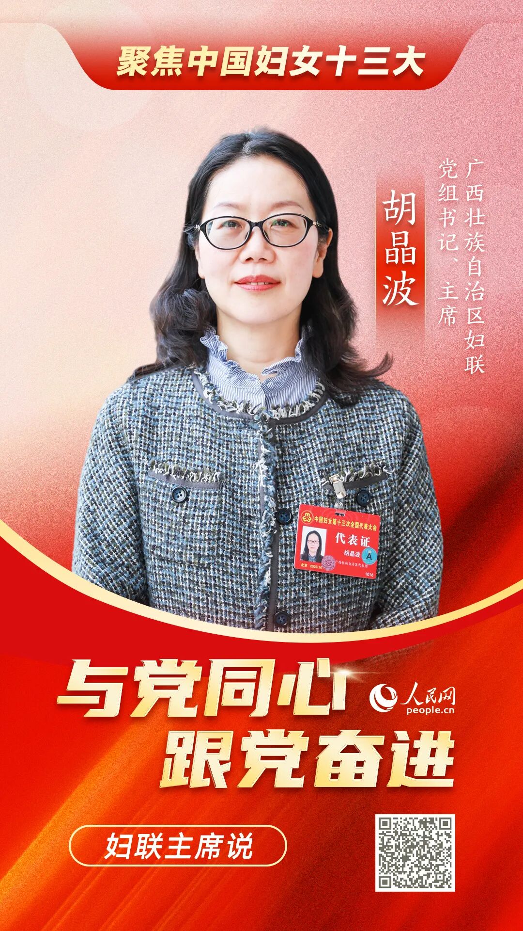 2023年10月23日至26日,中国妇女第十三次全国代表大会在北京隆重召开。大会期间,中国妇女十三大代表,广西壮族自治区妇联党组书记、主席胡晶波接受人民网记者专访,就五年来广西妇联工作的实践探索与经验成果,如何贯彻落实中国妇女十三大会议精神、谋划好未来五年发展蓝图等方面进行分享。
