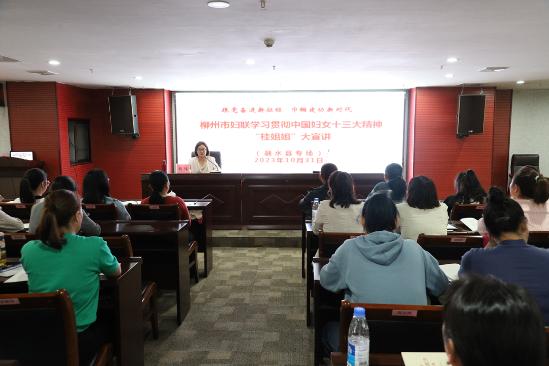 10月31日,柳州市妇联主席、党组书记韦玮到融水县开展学习贯彻习近平总书记重要讲话精神及中国妇女十三大精神“桂姐姐”大宣讲。