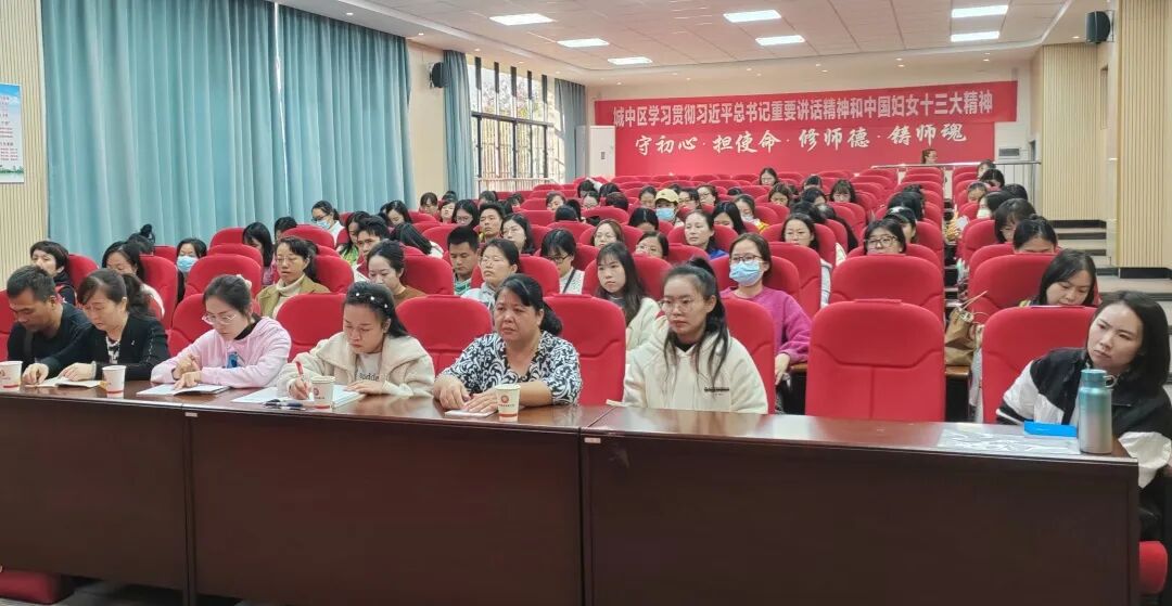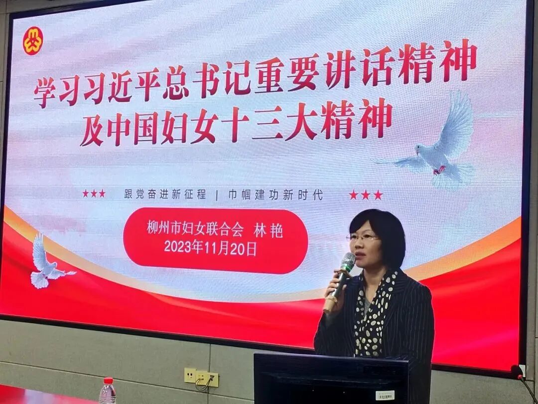 为全面深入学习贯彻习近平关于妇女儿童工作的重要论述和指示批示精神及中国妇女十三大精神,引导全区广大妇女切实把思想和行动统一到贯彻习近平新时代中国特色社会主义思想和中国妇女十三大部署上来,确保大会精神在基层落地生根、开花结果,11月20日,城中区妇联举办学习贯彻中国妇女十三大精神专题宣讲会,柳州市妇联副主席林艳进行宣讲,城中区各学校教师代表、各街道,社区(村)妇联主席参加会议。